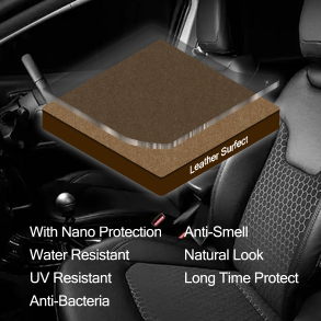อณูขนาดเล็กระดับนาโน ซึ่งอนูเล็กๆ จะเรียงตัวกันเป็นโล่ ปกป้องและป้องกันการซึมผ่านของของเหลว คราบสกปรกเพื่อปกป้องเบาะหนัง จากการเสีย หายที่เกิดจากของเหลวชนิดต่างๆ